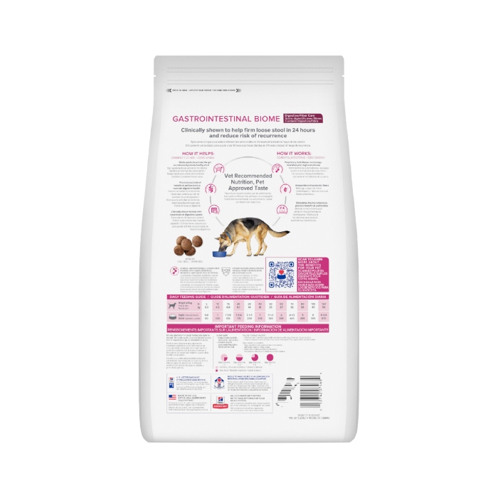 Hill’s Prescription Diet Gastrointestinal Biome is clinically shown to help firm loose stool in 24 hours and reduce risk of recurrence.