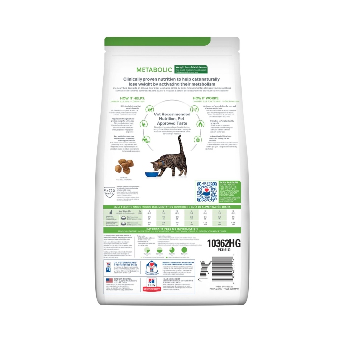 Hill's Prescription Diet Metabolic Dry Cat Food provides all the nutrition cats needs to lose and maintain weight by activating their unique metabolism. Please consult your veterinarian for further information on how our Prescription Diet foods can help your cat to continue to enjoy a happy and active life.